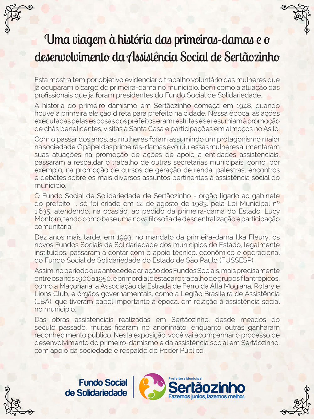 Uma viagem à história das primeiras damas e o desenvolvimento da Assistência Social em Sertãozinho